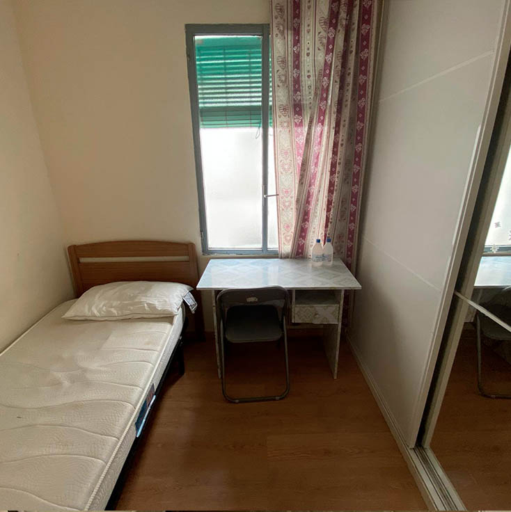 189€ - Room with single bed, desk, wardrobe and window.